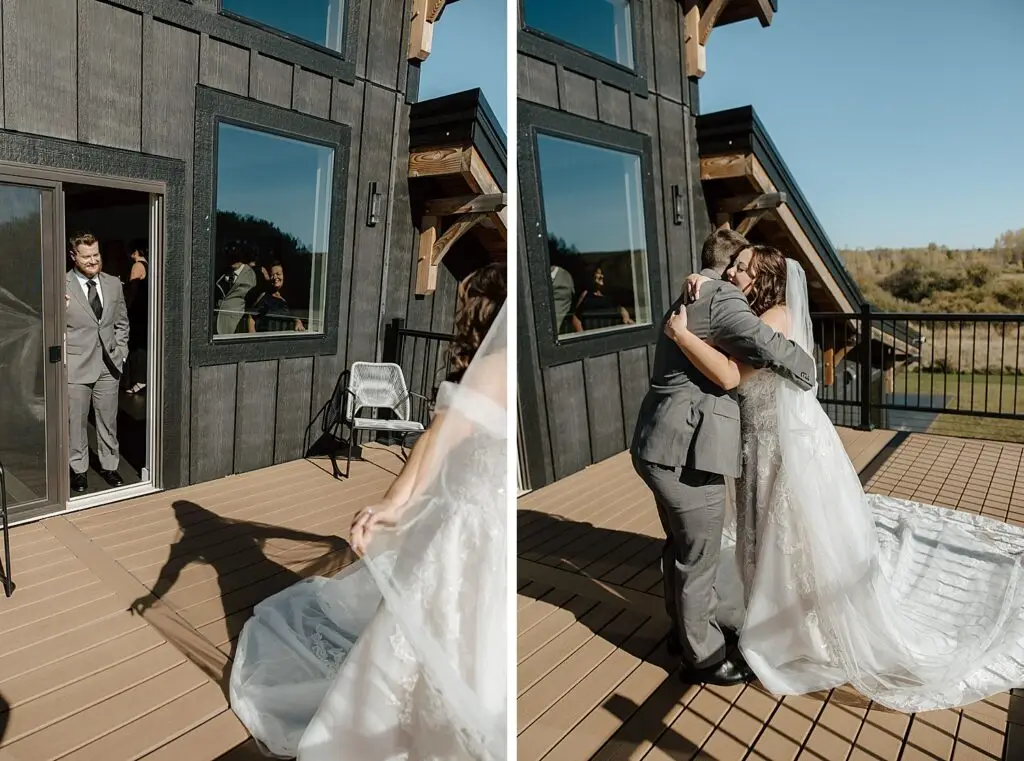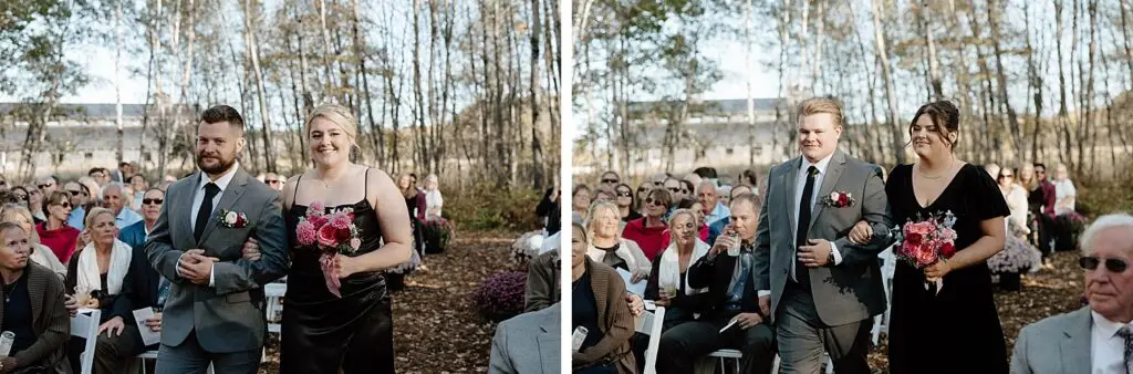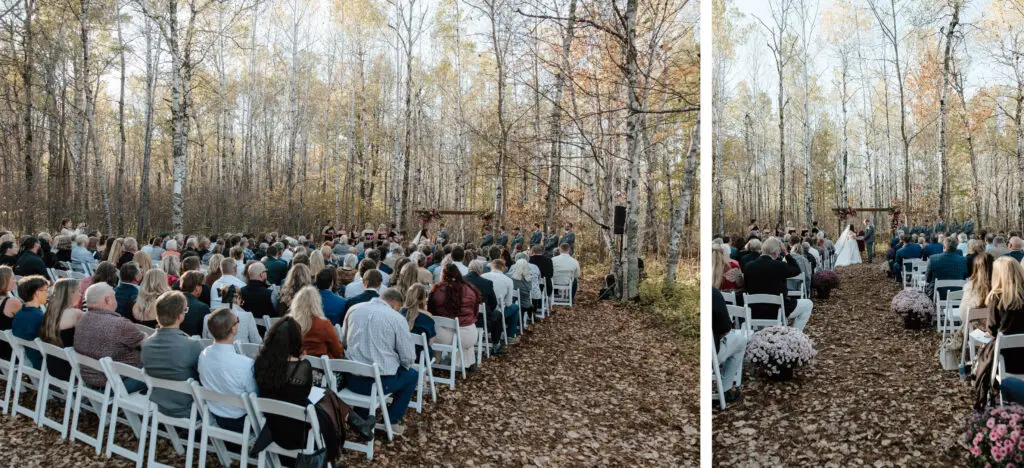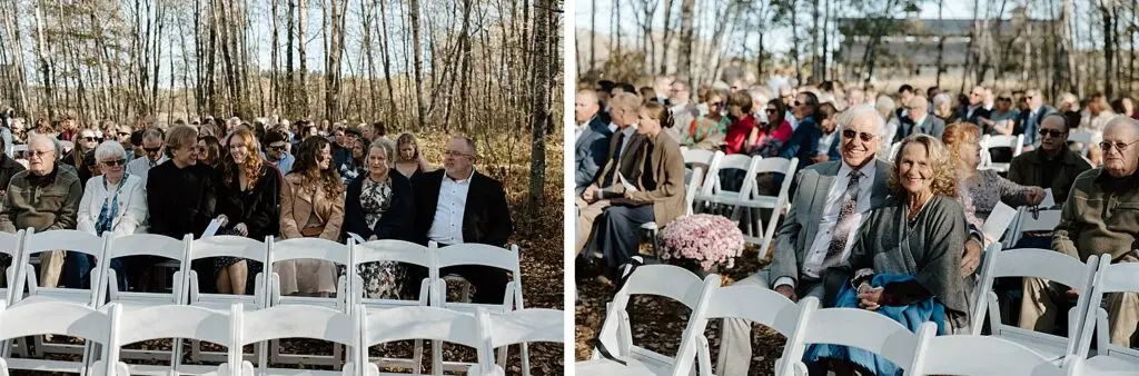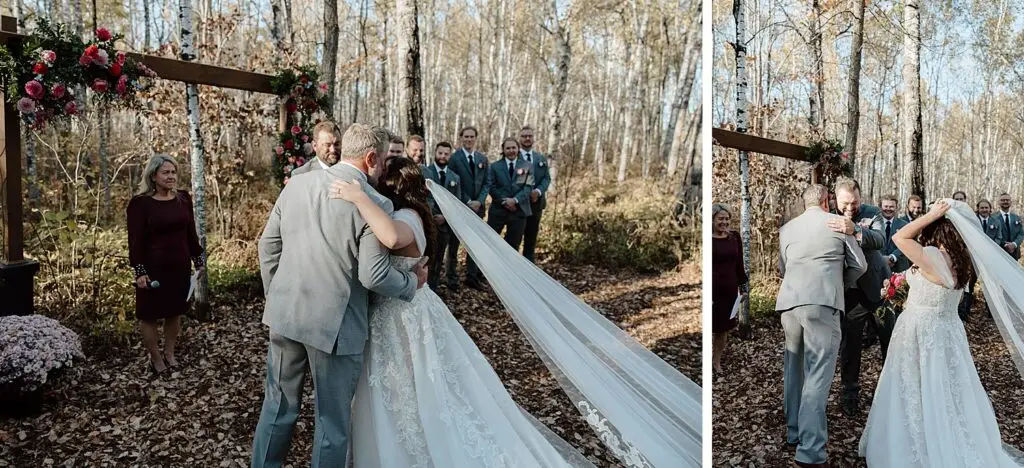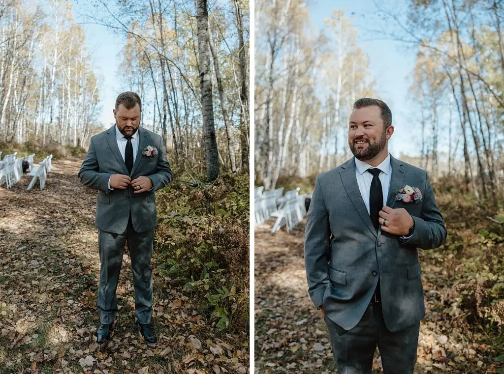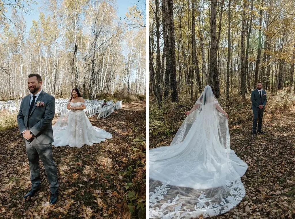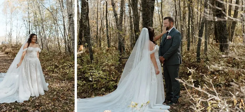 The morning started slow and cozy, as Monét got ready with her girls in the hotel. She even surprised everyone with matching sweatsuits (1000/10 idea, everyone was obsessed!), and the vibe was pure calm-before-the-party. The morning rolled into some of my favorite moments; a first look with her dad, another with her brother (I still can’t get over that photo of her mom peeking out the window), and then a private first look with Pete at their ceremony site in the woods. Just the two of them, surrounded by fall colors and that crisp autumn air. It couldn’t have been more perfect.