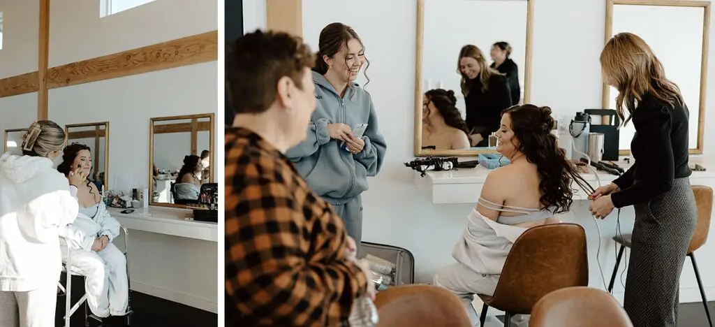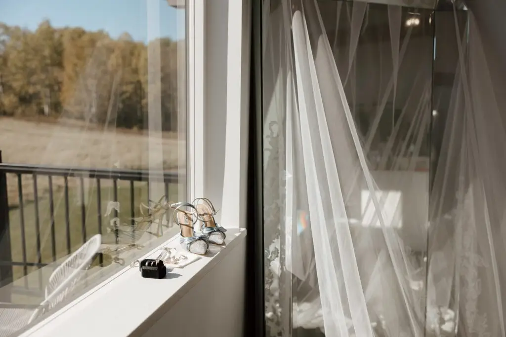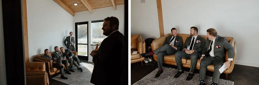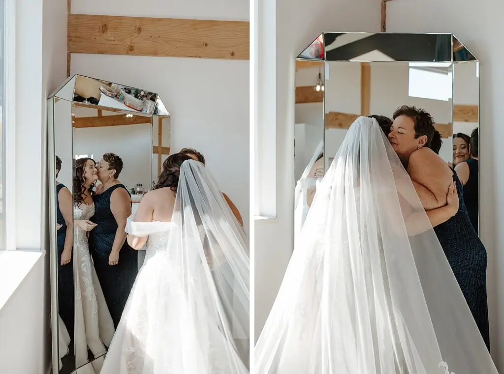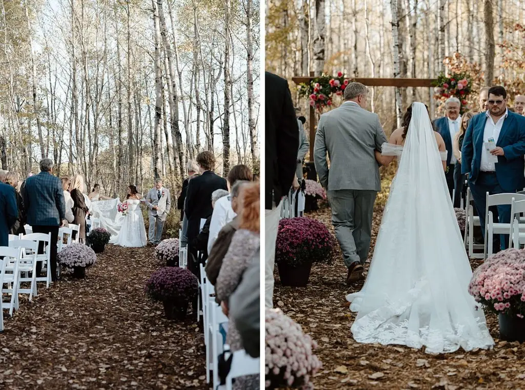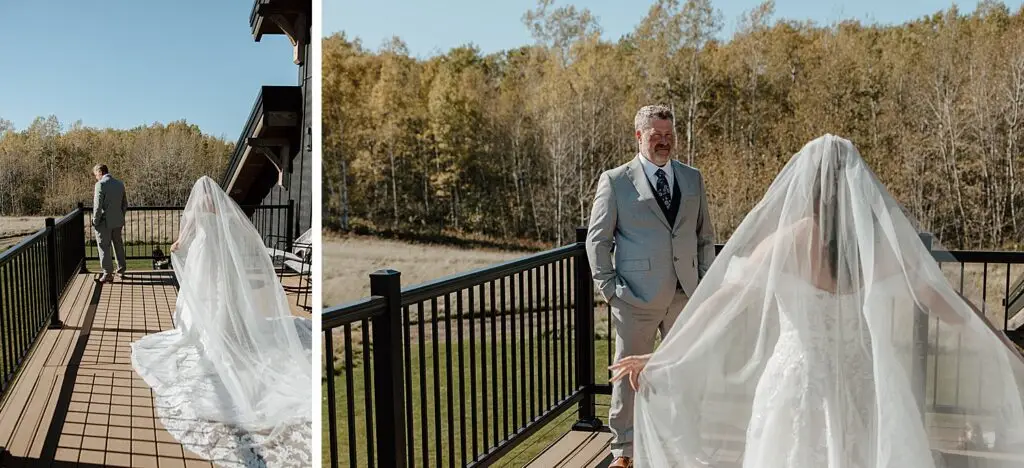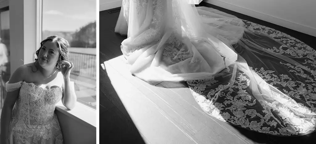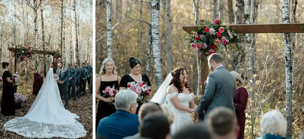 The morning started slow and cozy, as Monét got ready with her girls in the hotel. She even surprised everyone with matching sweatsuits (1000/10 idea, everyone was obsessed!), and the vibe was pure calm-before-the-party. The morning rolled into some of my favorite moments; a first look with her dad, another with her brother (I still can’t get over that photo of her mom peeking out the window), and then a private first look with Pete at their ceremony site in the woods. Just the two of them, surrounded by fall colors and that crisp autumn air. It couldn’t have been more perfect.