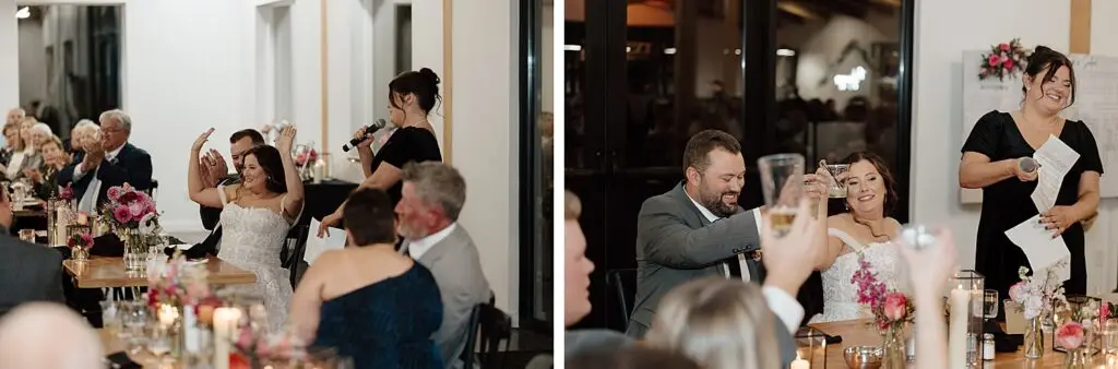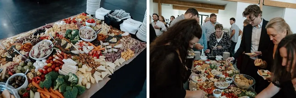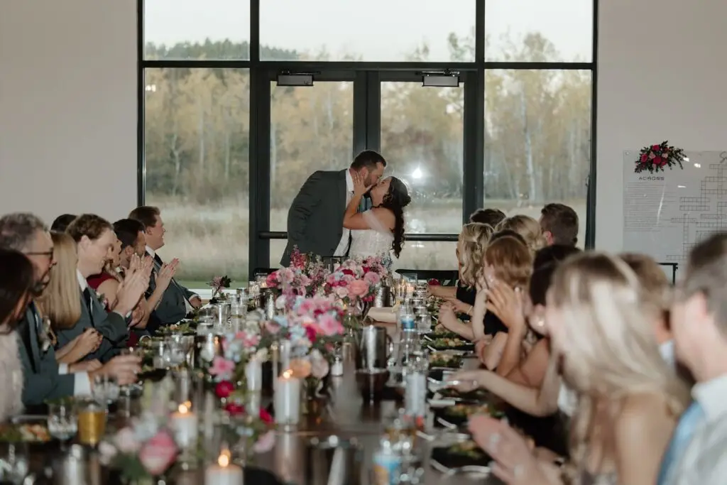 Their ceremony took place beneath the trees, followed by cocktails and cozy moments inside Ivy Black’s stunning and warm modern interior. This venue really doesn’t need much, the natural beauty does all the talking. I loved the personal touches they added, like naming each table after a Minnesota lake and having their wedding party (and their partners!) at the head table. And can we talk about that grazing board during cocktail hour? It was a huge hit!